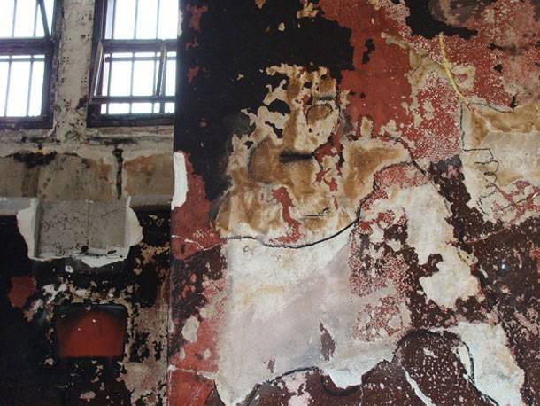 Πρόκειται για το «σπίτι» τους που κάηκε ολοσχερώς από την πυρκαγιά τον περασμένο Σεπτέμβριο, στις ανδρικές φυλακές Κορυδαλλού. Σε αυτή την καταστροφή οι κρατούμενοι απάντησαν με δημιουργία, ζωγραφίζοντας πάνω στα απομεινάρια των καμένων τοίχων, υπό την καθοδήγηση του γνωστού εικαστικού Μανώλη Χάρου.