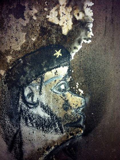 «Καθαρίσαμε τα αποκαΐδια» λέει ο Μανώλης Χάρος, και «επειδή δεν μπορούσαμε να δουλέψουμε όλοι ταυτόχρονα το πανό 6 μέτρων γιατί απλούστατα δεν χωρούσαμε, τους πρότεινα να ζωγραφίσουμε τους τοίχους που ήταν ήδη καμένοι κι επάνω τους ξεχώριζαν αμυδρά κάποια σχήματα Αυτό είναι ας πούμε, ένα παιχνίδι που παίζουν οι κρατούμενοι στην φυλακή, με την έννοια ότι από τη στιγμή που κοιτάζουν με τις ώρες τον τοίχο εκεί βλέπουν αγγέλους και δαίμονες, γυμνές γυναίκες, ξερά δέντρα, βλέπουν ό,τι μπορείς να φανταστείς».